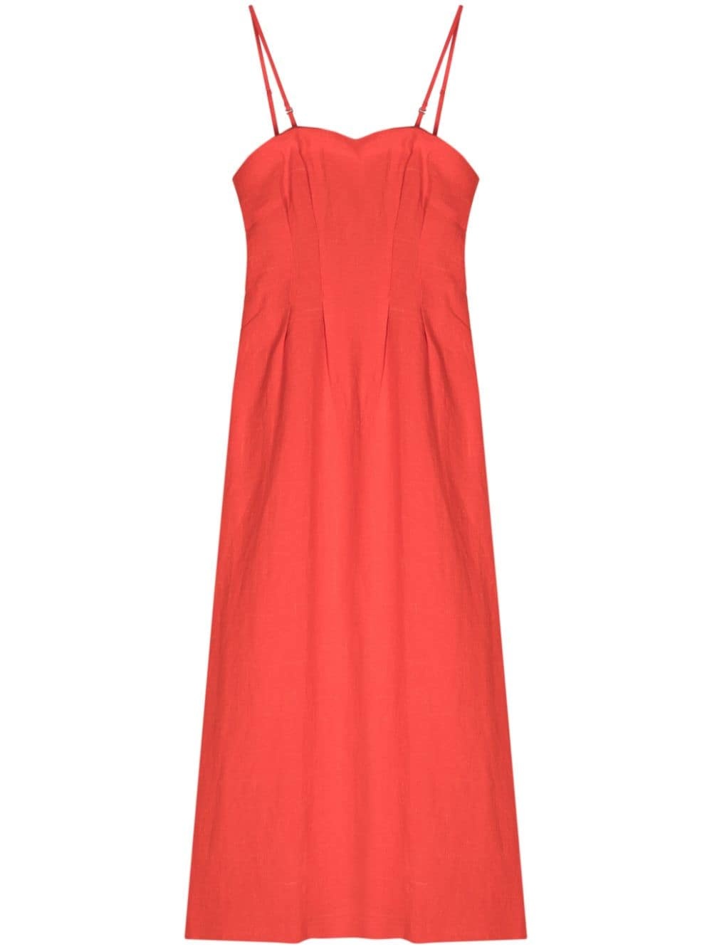 square-neck tweed midi dress Highlights - Bright red - Linen blend - Tweed - Boucle construction - Dart detailing - Square neck - Concealed side hook and zip fastening - Adjustable spaghetti straps - Square open back - Side slit - Straight hem - Floor-length - Mesh lining Imported Composition Outer: Linen/Flax 95%, Silk 5% Lining: Nylon 83%, Polyurethane 17%