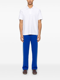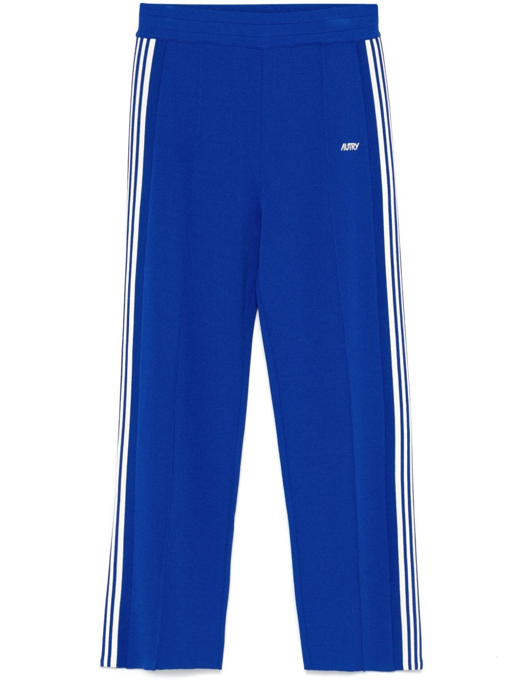 knitted track pants Highlights - Cobalt blue - Elasticated waistband - Rear patch pocket - Short side slits Made in Italy Composition Viscose 64%, Polyamide 36% SIZE & FIT Model measurements Height 6 ft 2 in(1.87 m) Bust/Chest 38.18 in(97 cm) Hips 36.61 in(93 cm) Waist 29.13 in(74 cm) FittingInformation Designed for a relaxed straight leg, allowing a comfortable and loose fit over the leg The elasticated waist allows for a comfortable fit Made with a midweight knit, this piece offers some stretch