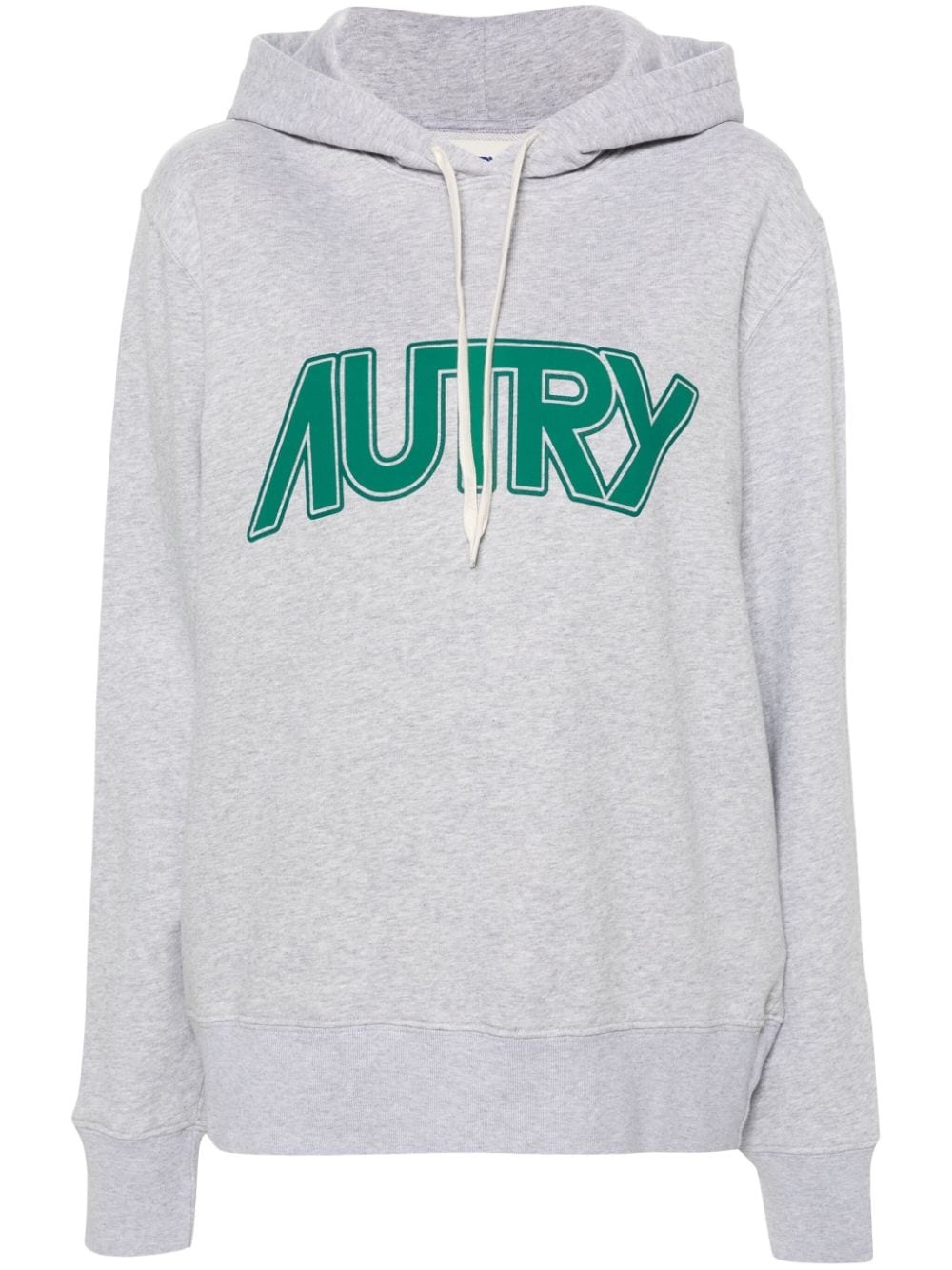 logo-print melange hoodie Highlights - Heather grey/emerald green - Cotton - Melange effect - Logo print to the front - Drawstring hood - Drop shoulder - Long sleeves - Ribbed cuffs and hem - French terry lining Imported Composition Cotton 100% Washing instructions Machine Wash