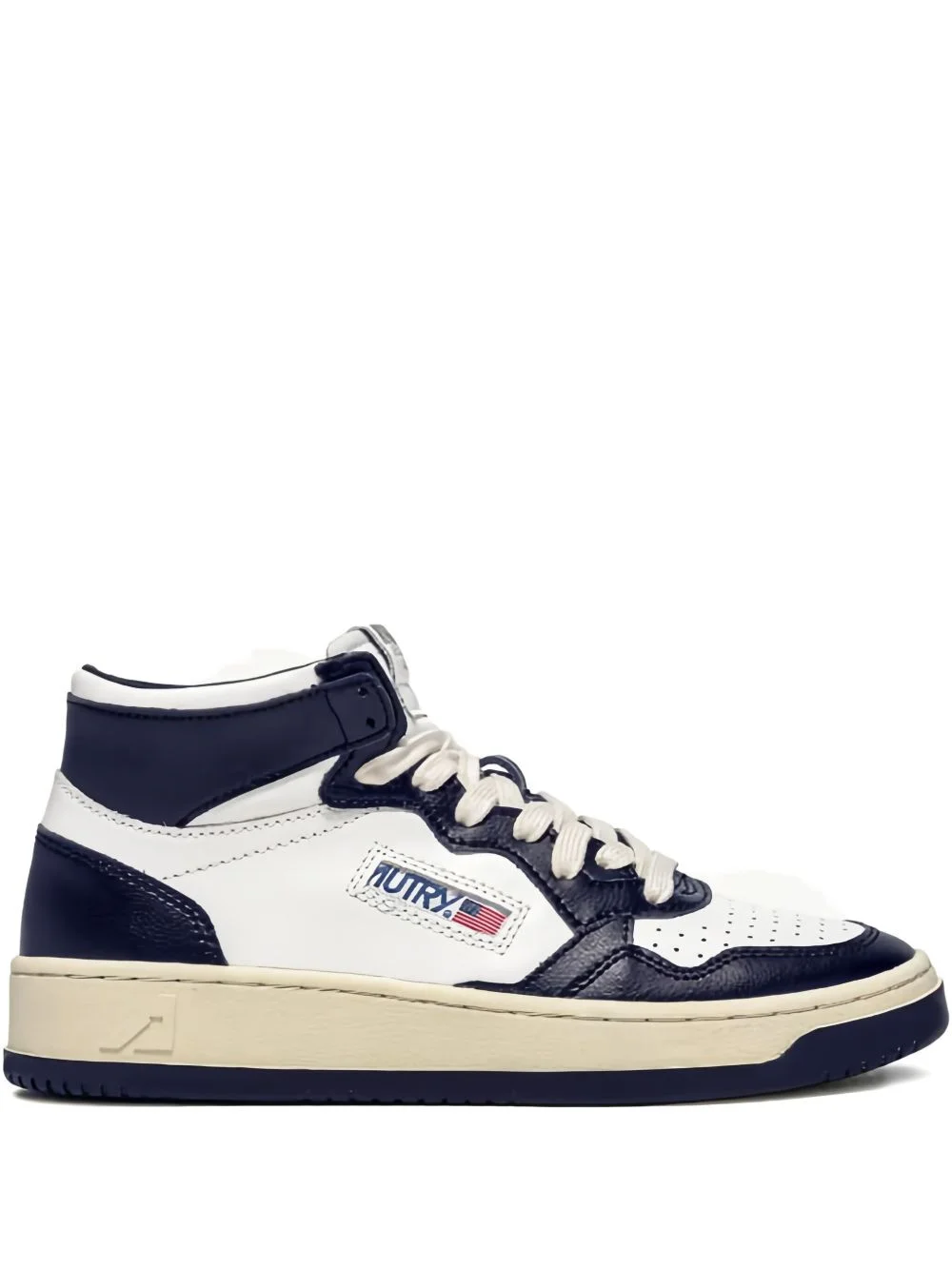 MEDALIST MID BICOLOR SNEAKERS IN WHITE AND BLUE LEATHER
