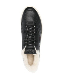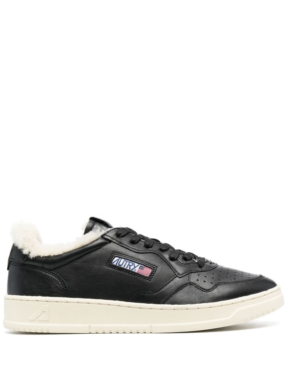 Medalist low-top sneakers black calf leather shearling lining perforated detailing logo patch at the tongue round toe front lace-up fastening ridged rubber sole Imported Composition Outer: Calf Leather 100% Sole: Rubber 100% Lining: Sheep Skin/Shearling 100% SIZE & FIT Measurement HEEL 1.57 in(4 cm) Sole height 1.18 in(3 cm)