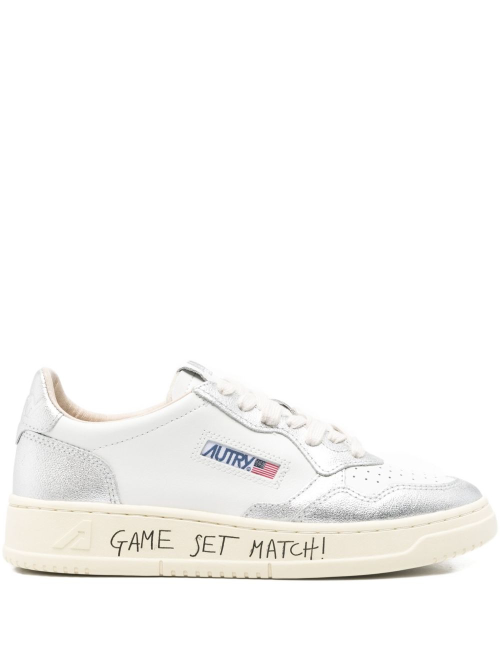 MEDALIST LOW SNEAKERS IN WHITE AND SILVER LEATHER WITH LETTERING