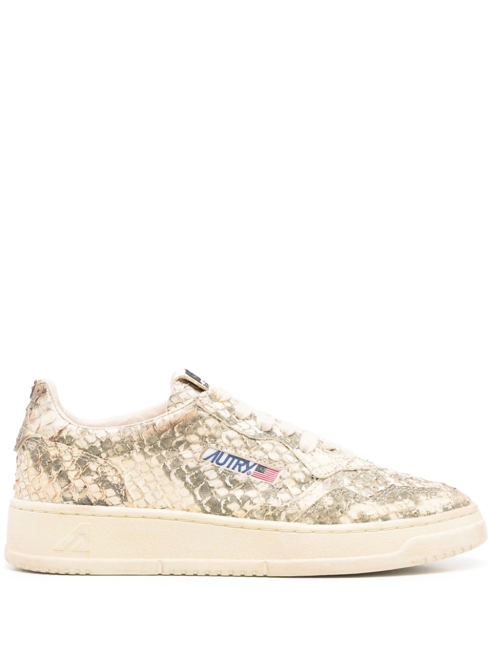 Super Vintage distressed snake-effect leather sneakers Snake print