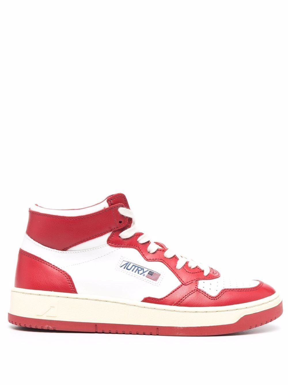 MEDALIST MID BICOLOR SNEAKERS IN WHITE AND RED LEATHER