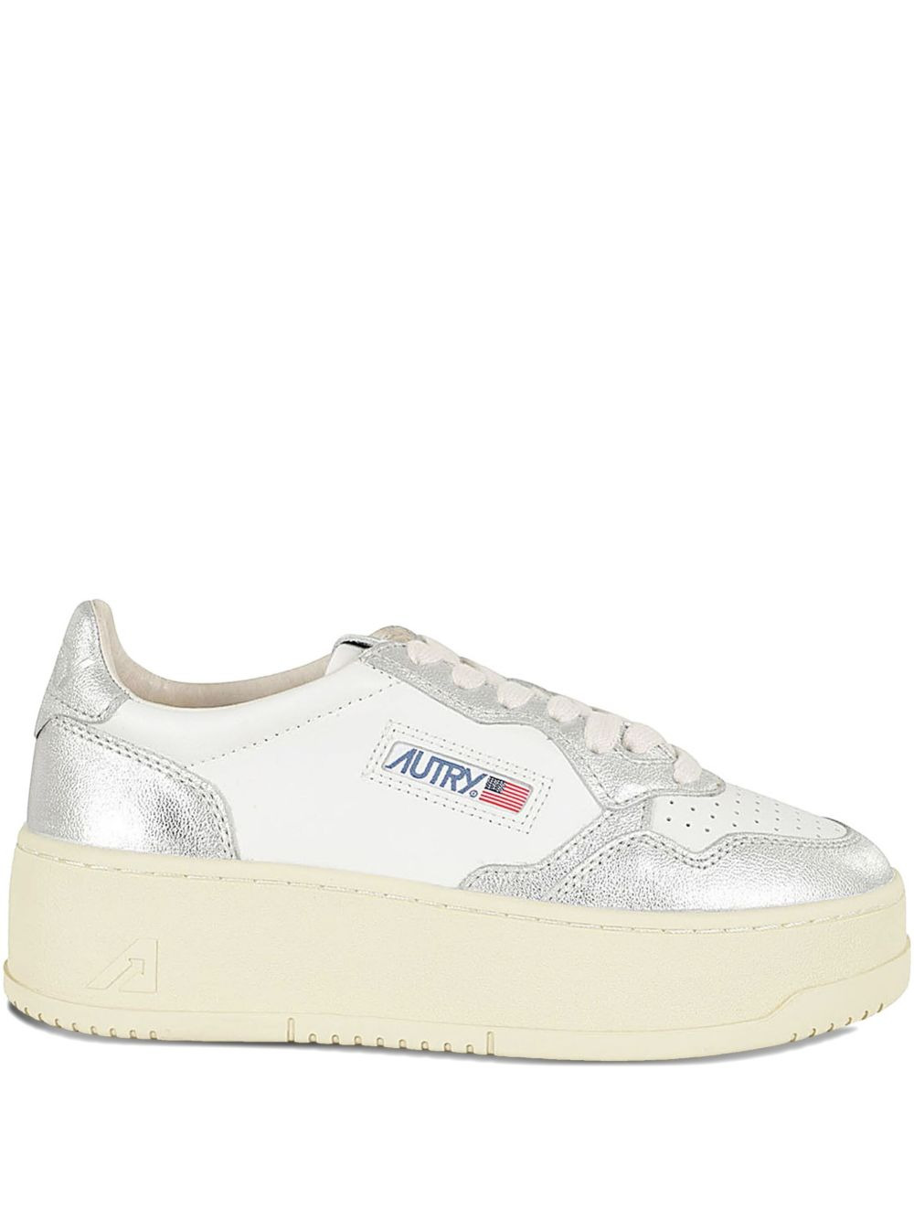 platform leather sneakers Highlights - White - Leather upper - Perforated toe - Contrasting leather details - Platform rubber sole - Cotton laces Imported Composition Lining: Calf Leather 100% Outer: Calf Leather 100% Sole: Rubber 100%