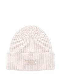 ribbed wool beanie Highlights - Cream - Ribbed knit - Logo patch - Folded brim Made In Italy Composition Wool 40%, Recycled Wool 40%, Recycled Polyamide 20% Washing instructions Hand Wash