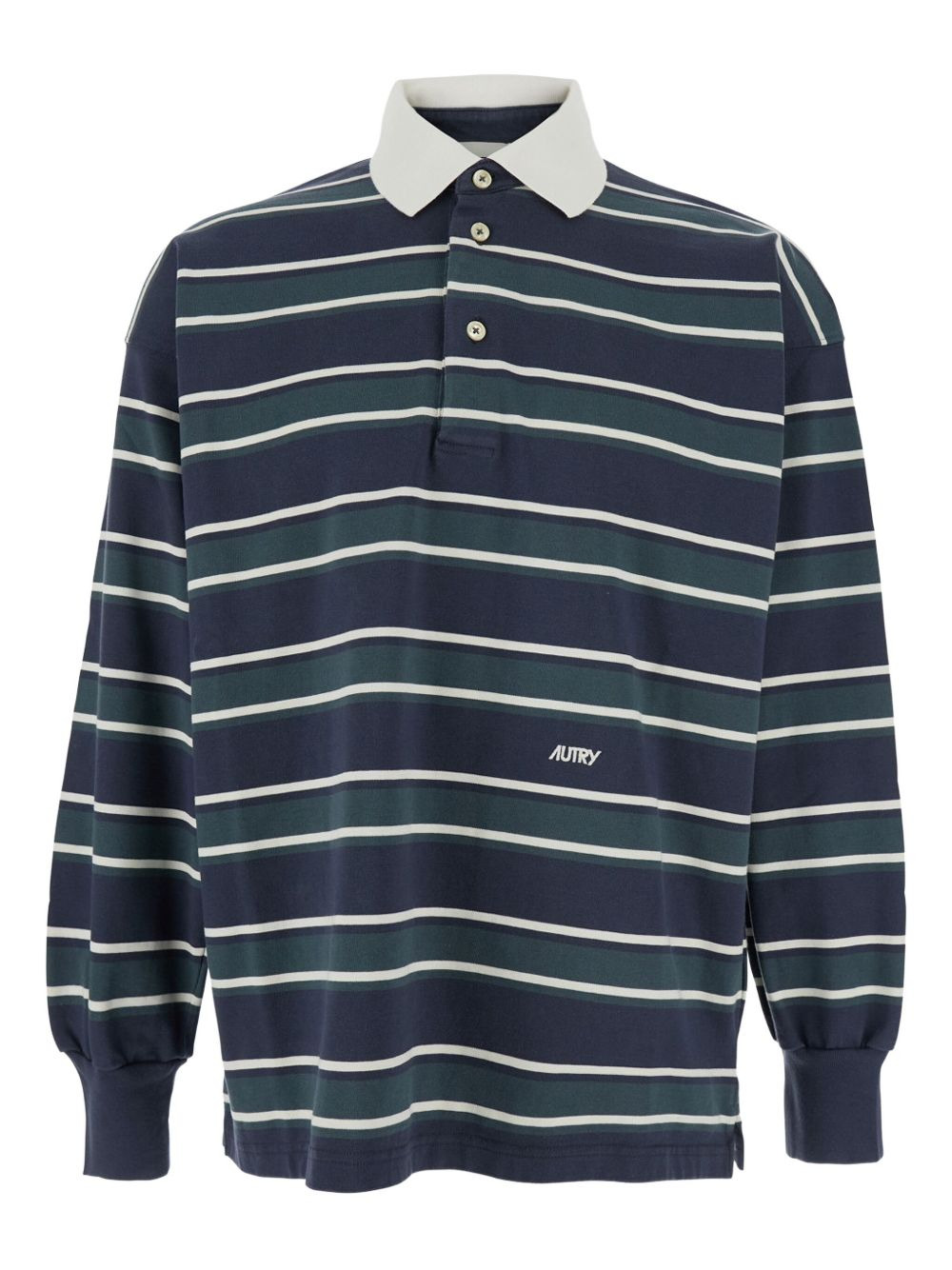 striped long-sleeve polo shirt Highlights - Blue - Long sleeves - Button placket - Embroidered logo Imported Composition Fabric 100% Washing instructions Read Manufacturer Guidelines