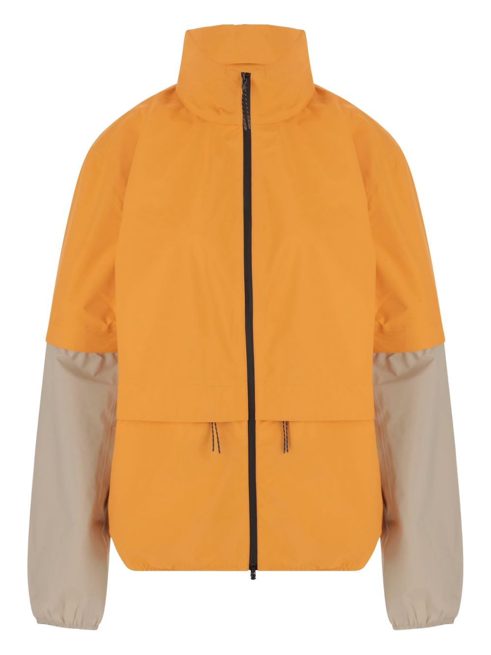 two-tone zip-front jacket Highlights - Orange - Zip fastening - Two-tone design - Long sleeves - Drawstring hem - Welt pockets Imported Composition Polyamide 100% Washing instructions Read Manufacturer Guidelines