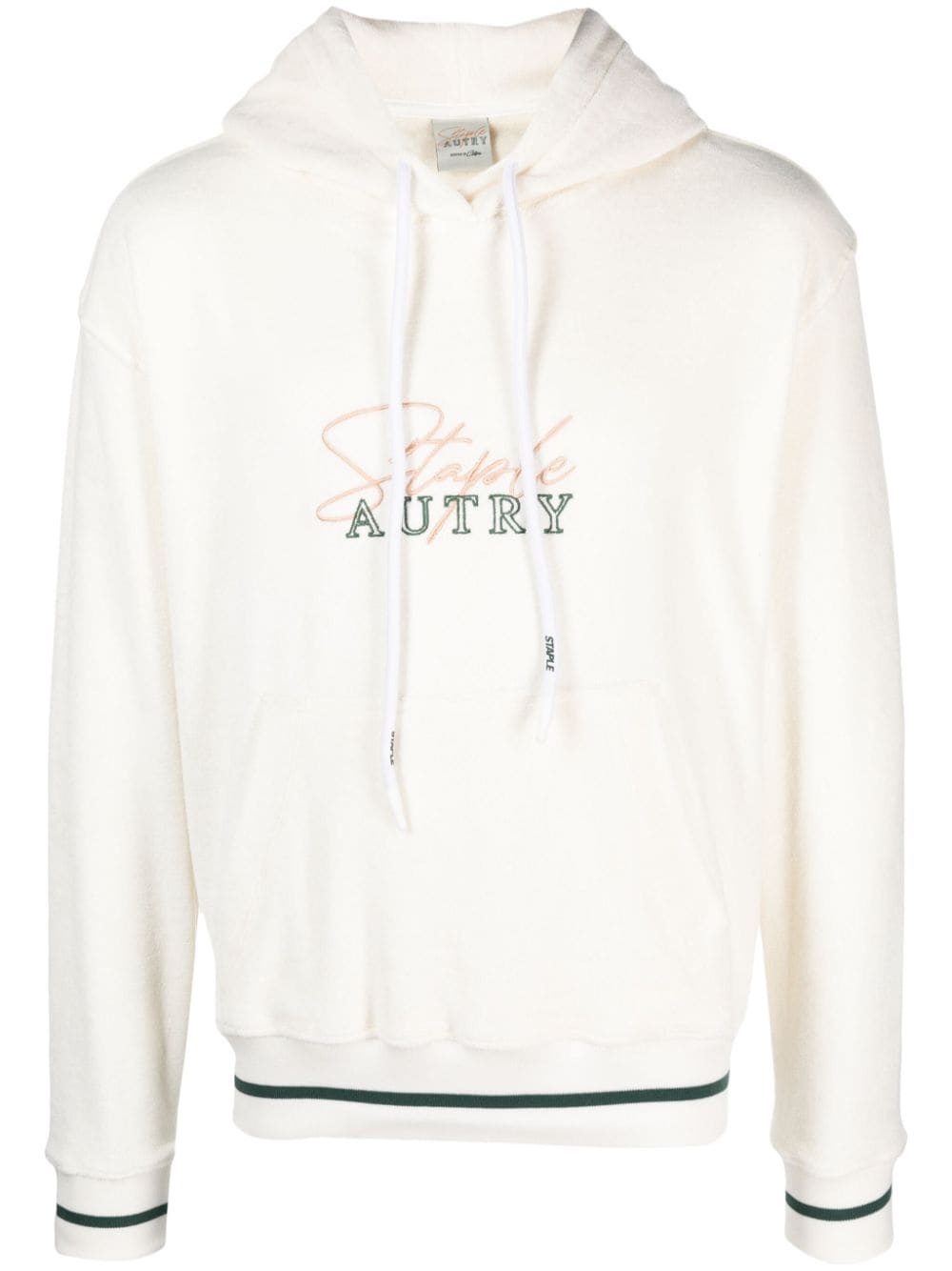 x Jeff Staple logo-embroidered hoodie Highlights - Off-white/multicolour - Cotton blend - Embroidered logo to the front - Stripe trim - Drawstring hood - Long sleeves - Elasticated cuffs - Front pouch pocket - Straight hem - When buying this unisex item, keep in mind that it is graded in standard men's sizing. Imported Composition Cotton 80%, Polyester 20% Washing instructions Machine Wash
