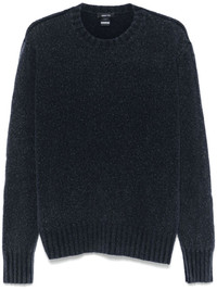 crew neck sweater Highlights - Navy blue - Merino wool-cashmere blend - Knitted construction - Crew neck - Long sleeves - Ribbed cuffs and hem Made in Italy Composition Merino 54%, Cashmere 30%, Silk 16% SIZE & FIT Model measurements Height 6 ft 1 in(1.85 m) Bust/Chest 35.82 in(91 cm) Hips 37.79 in(96 cm) Waist 29.13 in(74 cm) FittingInformation Designed for a relaxed fit, this piece allows for comfort and movement when worn Made with a midweight knit, this piece offers some stretch