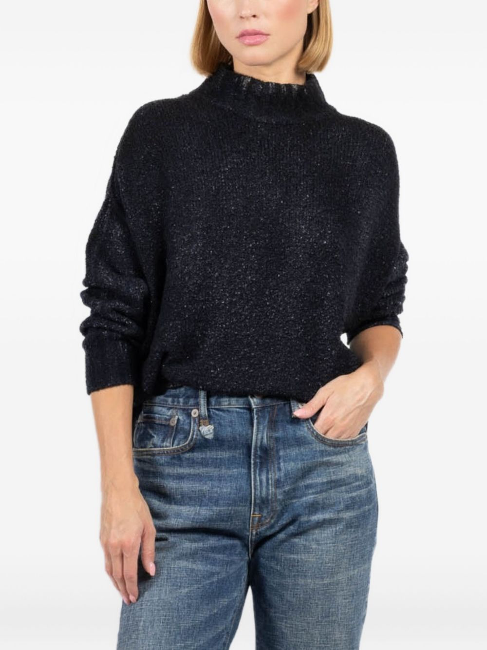 mock-neck sparkle knit sweater Highlights - Blue - Mock neck - Speckled effect - Long sleeves - Side slits Made in Italy Composition Wool 95%, Silk 5% Washing instructions Read Manufacturer Guidelines