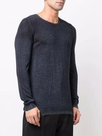 round neck jumper navy blue silk-cashmere blend fine knit round neck long sleeves straight hem Made in Italy Composition Cashmere 70%, Silk 30% SIZE & FIT Model measurements Height 6 ft 1 in(1.85 m) Bust/Chest 37.79 in(96 cm) Hips 37.4 in(95 cm) Waist 30.7 in(78 cm) FittingInformation This piece fits true to size. We recommend you get your regular size Cut for a relaxed fit Made with a mid-weight fabric Washing instructions Dry Clean Only