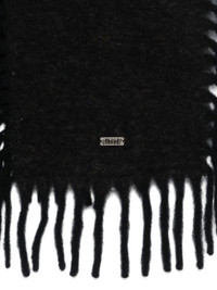 fringed scarf Highlights - Black - Fringed trim - Logo plaque Made in Italy Composition Mohair 28%, Alpaca 28%, Virgin Wool 24%, Polyamide 20% SIZE & FIT Measurement LENGTH 78.74 in(200 cm) WIDTH 23.22 in(59 cm) Washing instructions Read Manufacturer Guidelines