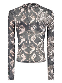 hooded distressed top Highlights - Black - Distressed knit - Long sleeves - Hooded Imported Composition Nylon 90%, Spandex/Elastane 10% Washing instructions Read Manufacturer Guidelines