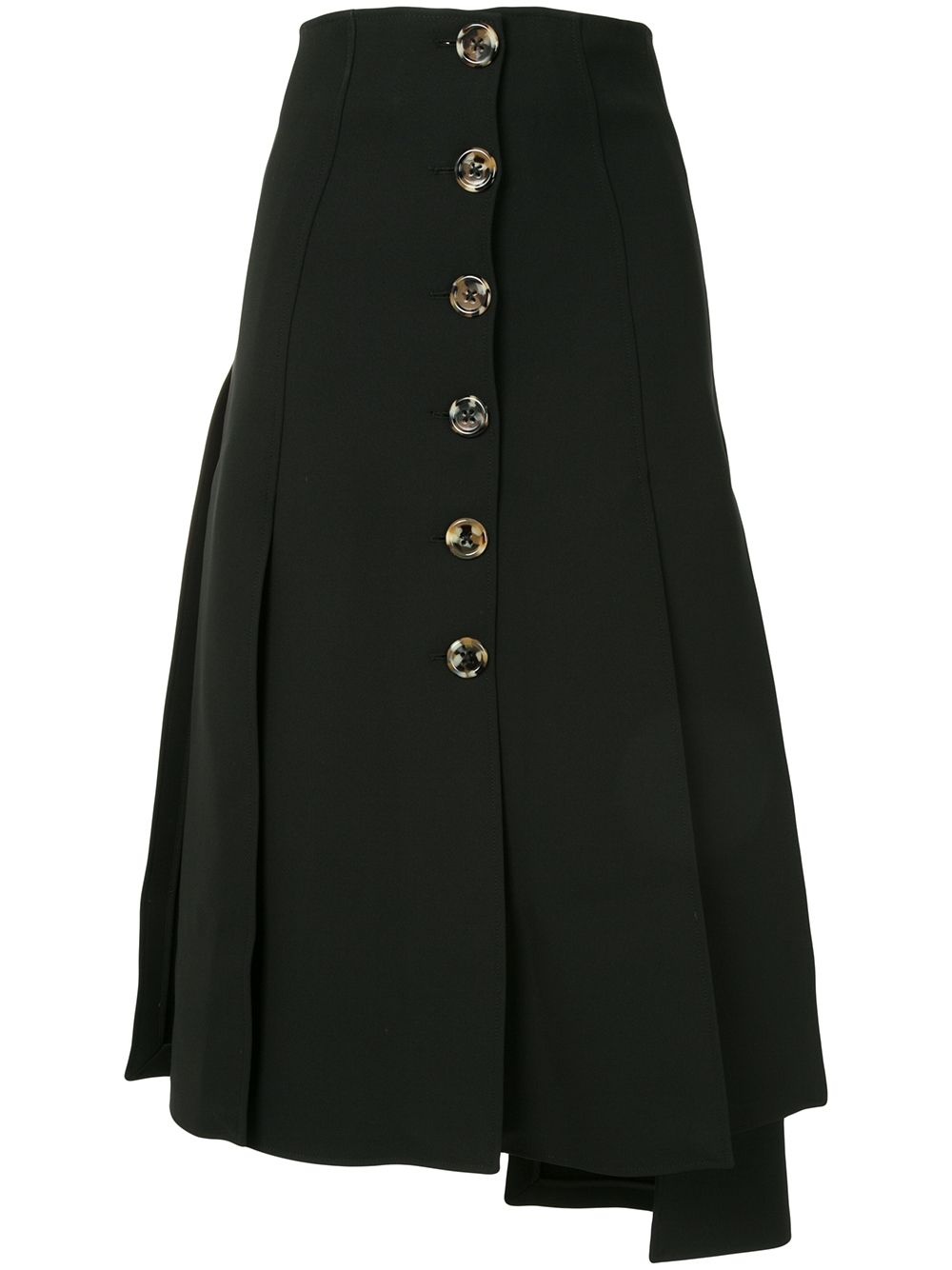 asymmetric flared midi skirt Black asymmetric flared midi skirt from A.W.A.K.E mode featuring an asymmetric style, a flared style, a button fastening and a mid-length. Imported Composition Polyester 100% SIZE & FIT Model measurements Height 5 ft 10 in(1.78 m) Bust/Chest 33.46 in(85 cm) Hips 36.22 in(92 cm) Waist 23.22 in(59 cm) FittingInformation This piece fits true to size. We recommend you get your regular size Designed to be fitted at the waist and hips, loose over the leg Made with a mid-weight fabric Washing instructions Hand Wash