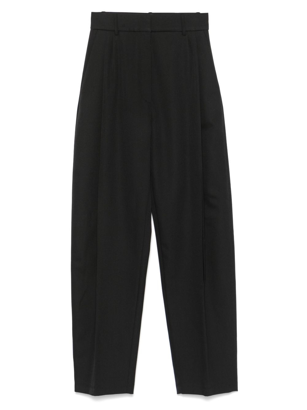 high-waisted trousers Highlights - Black - Concealed front fastening - Two side slit pockets - Belt loops - High-waisted Imported Composition Polyester 67%, Wool 31%, Polyamide 2% SIZE & FIT Model measurements Height 5 ft 11 in(1.8 m) Bust/Chest 31.49 in(80 cm) Hips 35.82 in(91 cm) Waist 24.8 in(63 cm) FittingInformation Designed for a tapered fit, these trousers allow for a close fit at the waist and a loose unrestricted fit over the leg with a closer fit towards the ankle Made from a midweight non-stretch fabric