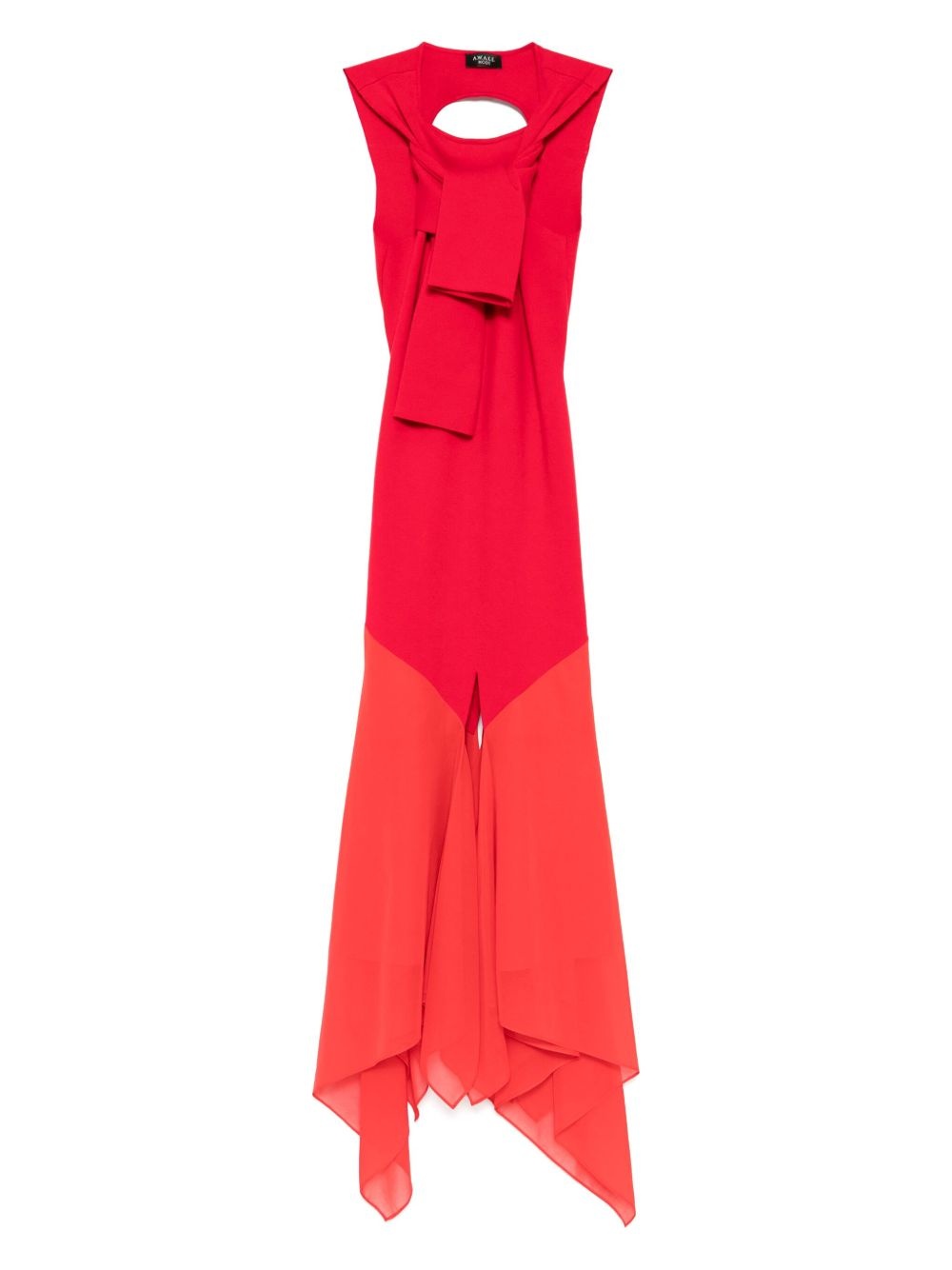 knitted dress Highlights - Crimson red - Sculpted neck - Open back - Sheer skirt Imported Composition Viscose 70%, Polyester 30% SIZE & FIT Model measurements Height 5 ft 10 in(1.78 m) Bust/Chest 29.92 in(76 cm) Hips 34.64 in(88 cm) Waist 24.8 in(63 cm) FittingInformation Designed for a slim fit that sits just away from the body offering a close yet comfortable fit The vented hem offers movement at the rear Made with a midweight knit, this piece offers some stretch Washing instructions Dry Clean Only