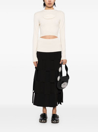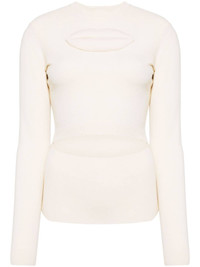 lip-applique knitted top Highlights - Ivory - Knitted construction - Lip applique - 3d detailing - Crew neck - Cut-out detailing - Long sleeves - Ribbed hem - Straight hem Imported Composition Viscose 70%, Polyester 30% SIZE & FIT Model measurements Height 5 ft 10 in(1.77 m) Bust/Chest 31.49 in(80 cm) Hips 35.43 in(90 cm) Waist 25.19 in(64 cm) FittingInformation Designed for a slim fit that sits just away from the body offering a close yet comfortable fit Made with a midweight knit, this piece offers some stretch