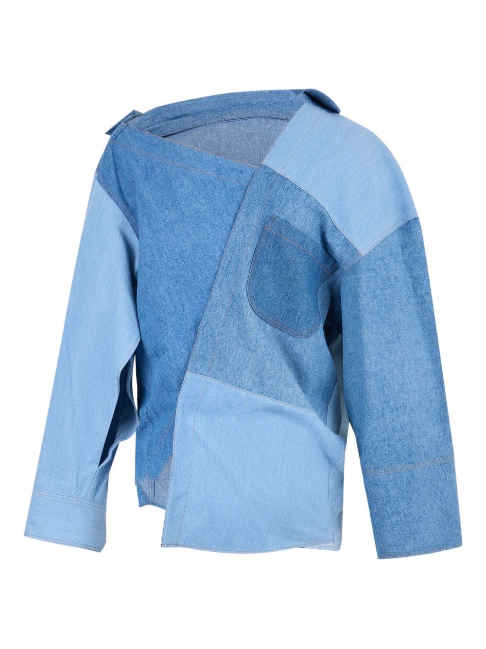 patchwork denim top Highlights - Powder blue - Asymmetric collar - Long sleeves - Contrasting denim panels Imported Composition Cotton 100% Washing instructions Dry Clean Only