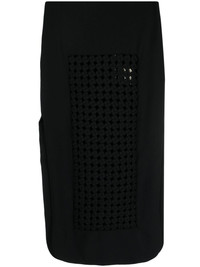 woven midi skirt Highlights - Black - Interwoven design - High-waisted - Rear zip fastening - Side slits - Curved hem Imported Composition Polyester 92%, Polyurethane 8% SIZE & FIT Model measurements Height 5 ft 10 in(1.78 m) Bust/Chest 30.7 in(78 cm) Hips 36.22 in(92 cm) Waist 25.59 in(65 cm) Measurement HIPS 35.43 in(90 cm) LENGTH 36.22 in(92 cm) WAIST 26.77 in(68 cm) FittingInformation This midi-length skirt is intended to be worn high on the waist Made from a midweight non-stretch fabric, this piece offers minimal elasticity when worn This piece fits true to size – take your usual size Washing instructions Dry Clean Only