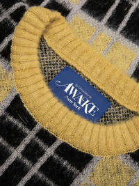 checked mohair sweater Highlights - Yellow - Mohair knit - Checked pattern - Black sections - Grey sections - Ribbed cuffs Imported Composition Mohair 100% Washing instructions Read Manufacturer Guidelines