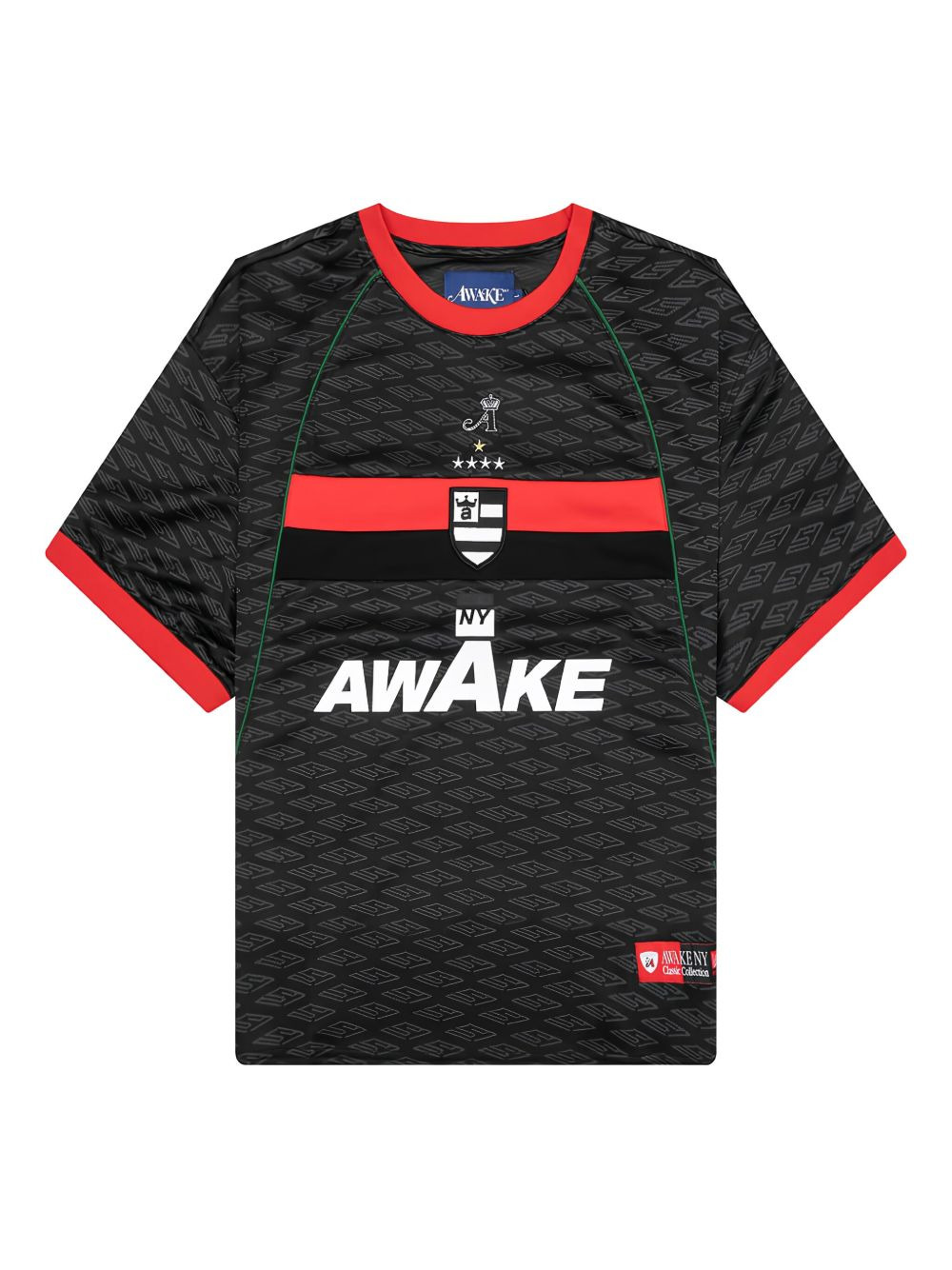crest-patterned jersey T-shirt Highlights - Black - All-over crest pattern - Red and green trims - Short sleeves - Embroidered crest - Large graphic lettering Made in United States Composition Polyester 100% Washing instructions Read Manufacturer Guidelines