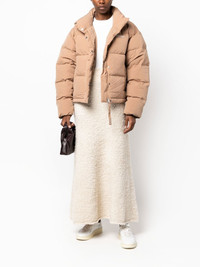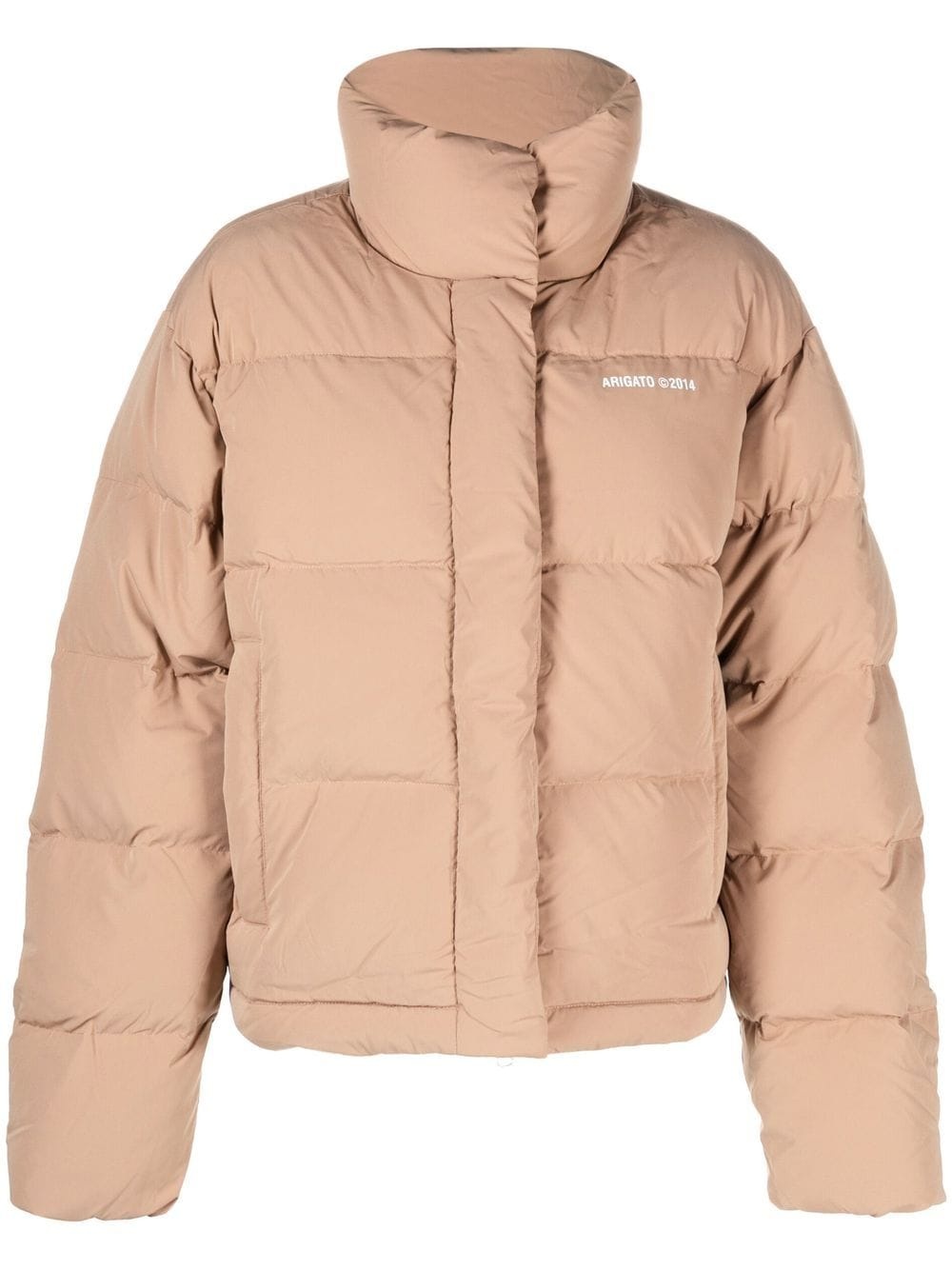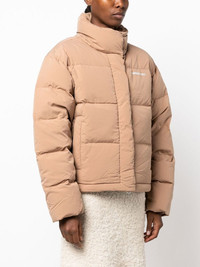 Halo Down Jacket camel brown recycled polyester/feather down logo print at the chest quilted finish padded design two side inset pockets concealed front zip fastening long sleeves straight hem Conscious: This item is made from at least 50% recycled or upcycled materials. For recycled synthetic clothing products we highly recommend using a microfibre-catching washing bag to ensure that no microplastics that can pollute water are released in the process. Imported Composition Body: Recycled Polyester 100% SIZE & FIT Model measurements Height 5 ft 10 in(1.78 m) Bust/Chest 31.49 in(80 cm) Hips 37 in(94 cm) Waist 23.62 in(60 cm) FittingInformation This piece fits true to size. We recommend you get your regular size Cut for a loose fit Made with a mid-weight non-stretch fabric Washing instructions Dry Clean Only