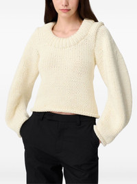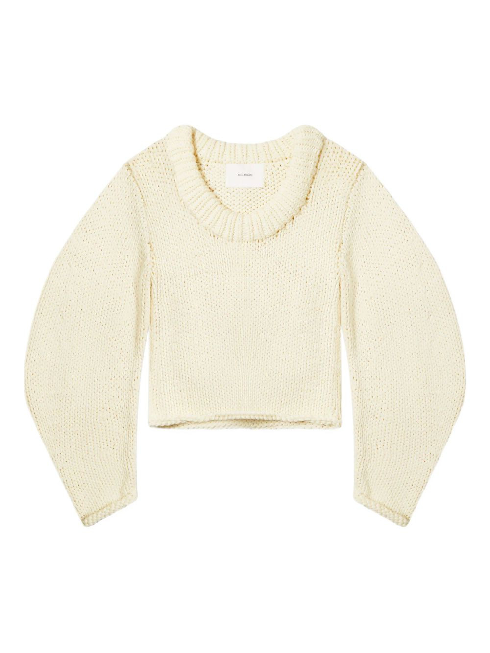balloon-sleeve round-neck sweater Highlights - White - Round neck - Balloon sleeves - Ribbed cuffs - Cropped hem Imported Composition Cotton 69%, Nylon 31% Washing instructions Read Manufacturer Guidelines