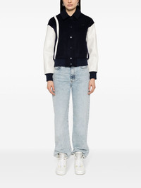 Bay logo-embroidered bomber jacket Highlights - Navy blue/white - Wool blend - Faux leather - Brushed effect - Logo plaque at the chest - Embroidered logo to the rear - Contrast detailing - Contrasting sleeves - Classic collar - Long sleeves - Ribbed cuffs and hem - Straight hem - Front press-stud fastening Imported Composition Outer: Polyester 96%, Wool 81%, Polyamide 19%, Elastane 4% Polyurethane 100% Lining: Polyester 100% SIZE & FIT Model measurements Height 5 ft 11 in(1.8 m) Bust/Chest 33.07 in(84 cm) Hips 37.4 in(95 cm) Waist 25.19 in(64 cm) FittingInformation Designed for a relaxed fit, this piece allows for comfort and movement when worn The ribbed hem offers a close, comfortable fit Made from a midweight non-stretch fabric This piece fits true to size – take your usual size Washing instructions Dry Clean Only