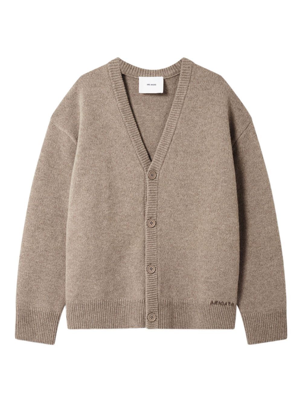 button-front cardigan Highlights - Stone brown - V-neck - Button fastening - Ribbed hem - Embroidered logo Imported Composition Wool 100% Washing instructions Hand Wash