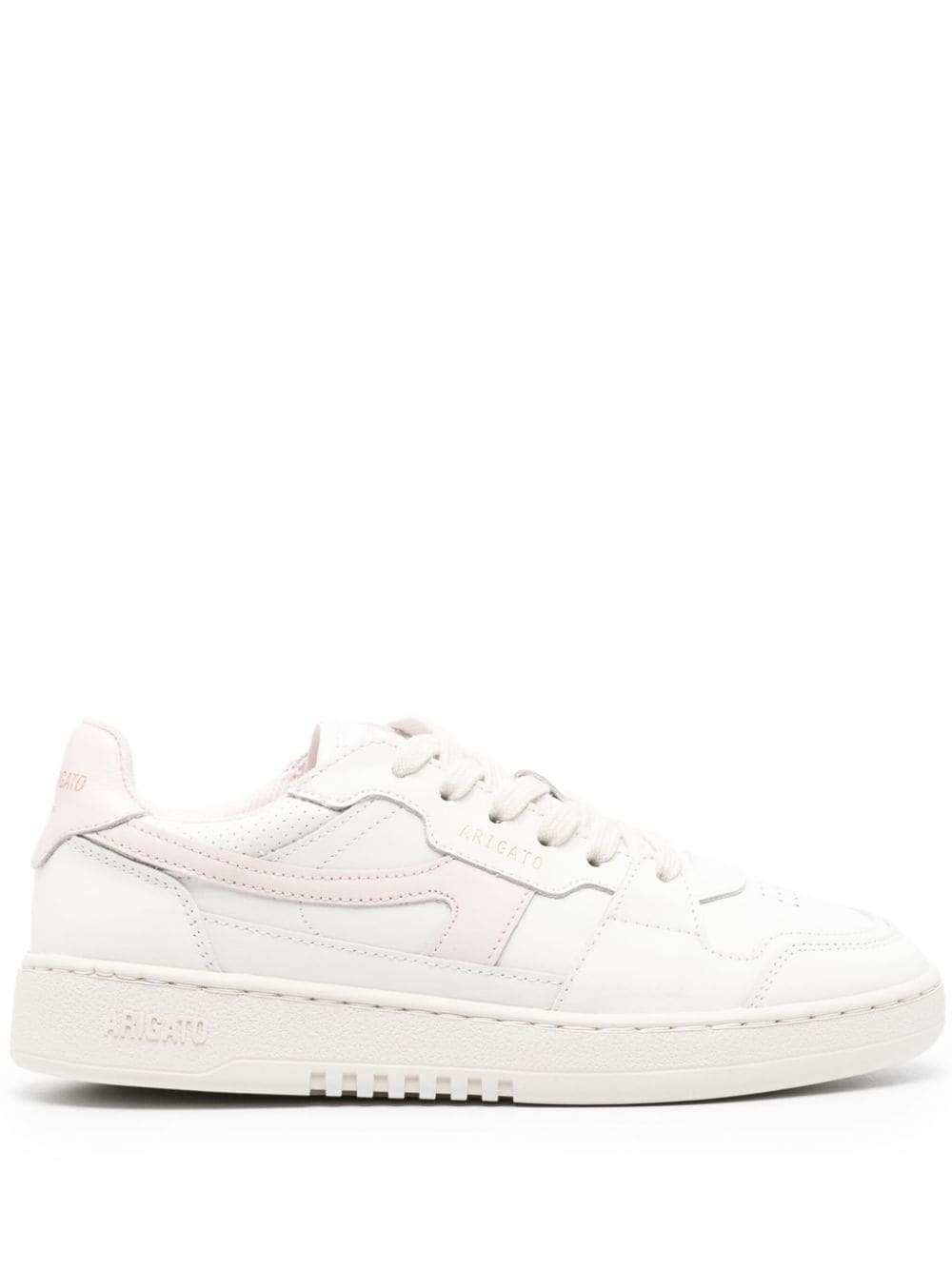 Dice-A leather sneakers Axel Arigato’s white and pink Dice-A sneakers are a fusion of ‘modern and vintage design details.’ They’re crafted from LWG-certified leather with an abstract ‘A’ at the sidewall and partially recycled rubber soles. Highlights - White/light pink - Calf leather - Logo patch to the side - Gold-tone logo lettering - Contrasting branded heel counter - Logo patch at the tongue - Perforated toebox - Round toe - Front lace-up fastening - Branded insole - Logo at the sole - Flat rubber sole Imported Composition Leather 100% SIZE & FIT Measurement HEEL 1.18 in(3 cm) Sole height 0.78 in(2 cm)