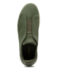 Dice Laceless elastic-panel suede-textured sneakers Highlights - Dark green - Suede upper - Elastic panel - Leather heel trim - Off-white sole - Ridged sole Imported Composition Lining: Recycled Polyester 80%, Leather 11%, Microfibre 9% Sole: Rubber 80%, Recycled Rubber 20% Outer: Suede 100%