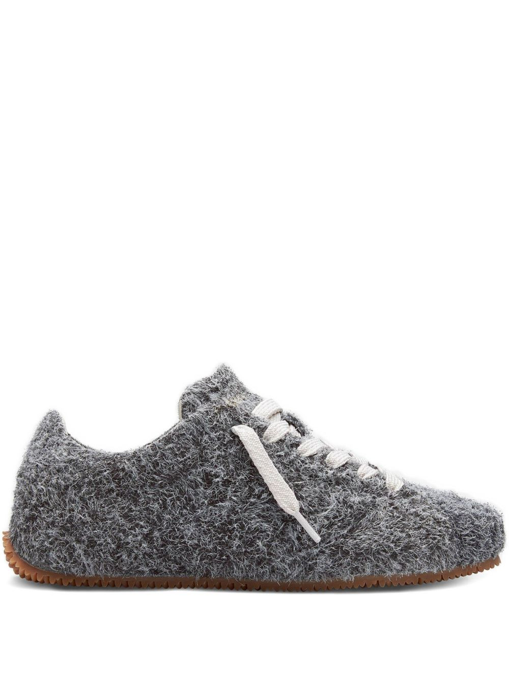 fuzzy lace-up sneakers Highlights - Dark grey - Fuzzy texture - Lace-up fastening - Round toe - Flat sole - Rubber sole Imported Composition Lining: Leather 67%, Recycled Polyester 33% Sole: Rubber 100% Outer: Suede 100%