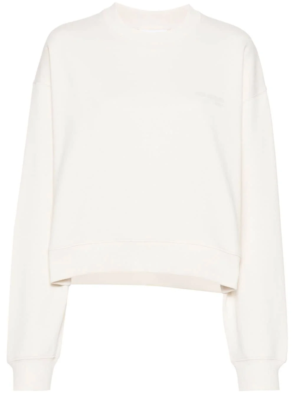 logo-print cotton sweatshirt Highlights - Light beige - Cotton - Jersey texture - Crew neck with ribbed trim - Drop shoulder - Tonal logo print at the chest - Long sleeves - Ribbed cuffs and hem - French terry lining - High-low hem - Pull-on style Imported Composition Cotton 100% Washing instructions Read Manufacturer Guidelines
