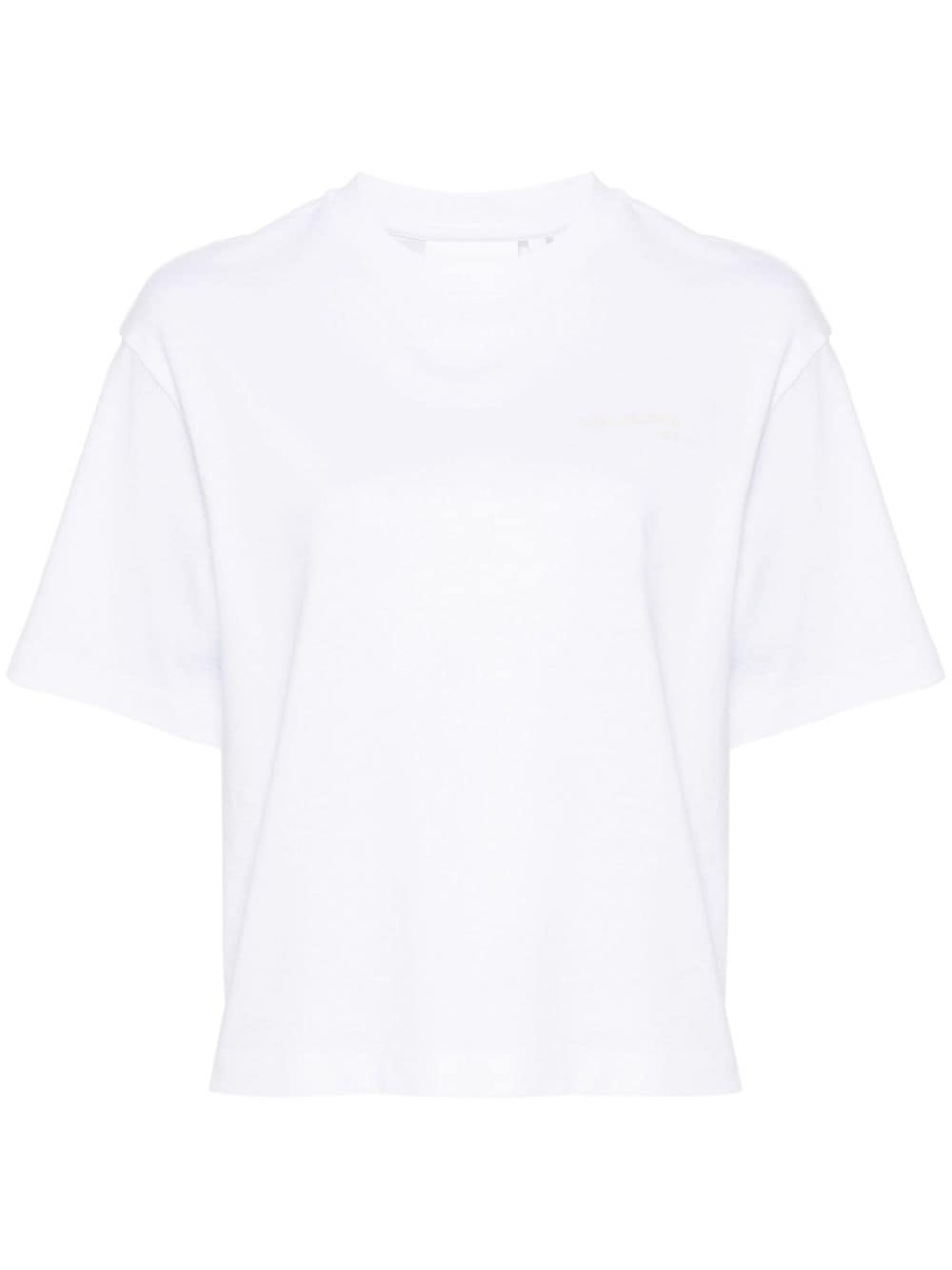 logo-print cotton T-shirt Highlights - White - Cotton - Soft jersey - Crew neck - Tonal logo print at the chest - Short sleeves - Straight hem - Pull-on style Imported Composition Cotton 100% SIZE & FIT Model measurements Height 5 ft 11 in(1.8 m) Bust/Chest 33.07 in(84 cm) Hips 37 in(94 cm) Waist 25.59 in(65 cm) Measurement SLEEVE LENGTH 9.44 in(24 cm) LENGTH 22.83 in(58 cm) BUST 44.09 in(112 cm) Shoulder Width 19.68 in(50 cm) FittingInformation Designed to be unstructured, offering a loose fit throughout Made from a midweight non-stretch fabric, this piece offers minimal elasticity when worn This piece fits true to size – take your usual size Washing instructions Machine Wash
