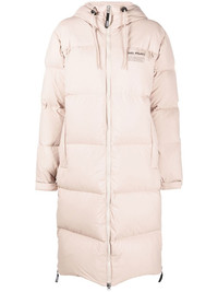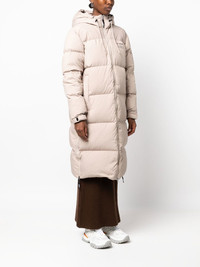 Lumia Down Puffer Coat beige feather down logo print at the chest drawstring hood high neck front zip fastening two side slit pockets long sleeves straight hem mid-length Conscious: We've partnered with Good On You – an ethical agency that rates how sustainably brands perform. This item comes from a brand that performs well in relation to their impact on the planet. Imported Composition Body: Recycled Polyester 100% SIZE & FIT Model measurements Height 5 ft 10 in(1.78 m) Bust/Chest 31.49 in(80 cm) Hips 37 in(94 cm) Waist 23.62 in(60 cm) Measurement SLEEVE LENGTH 26.37 in(67 cm) LENGTH 45.66 in(116 cm) WAIST 53.54 in(136 cm) BUST 52.75 in(134 cm) Shoulder Width 20.86 in(53 cm) FittingInformation This piece fits true to size. We recommend you get your regular size Cut for a loose fit Made with a mid-weight non-stretch fabric Washing instructions Dry Clean Only