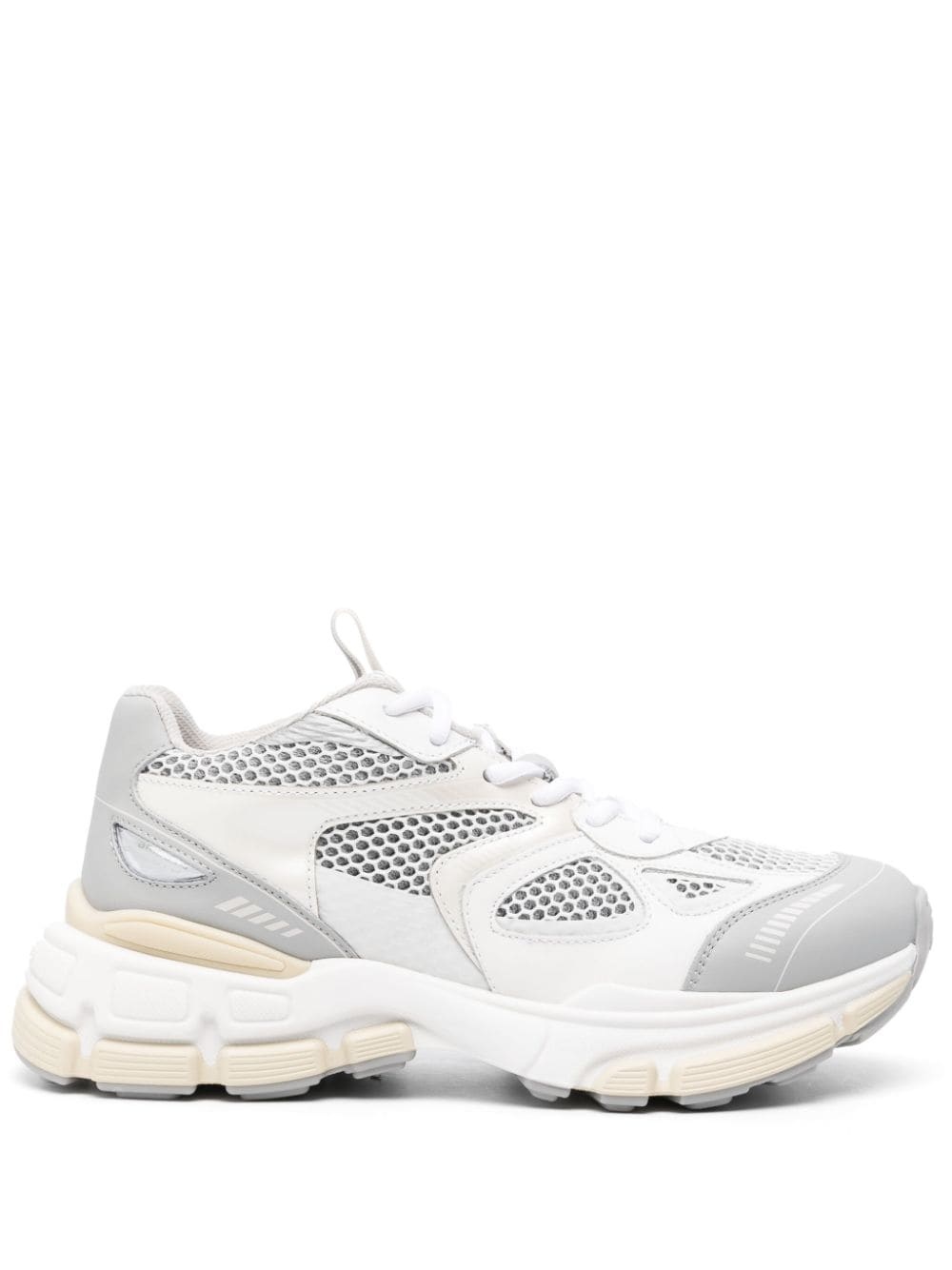 Marathon leather sneakers Axel Arigato's Marathon sneakers are crafted from leather and mesh panels. This model is set atop a chunky rubber sole and comes in a white and grey colourway. Highlights - Off-white/light grey/light beige - Calf leather - Mesh panelling - Logo patch at the tongue - Round toe - Front lace-up fastening - Branded insole - Pull-tab at the heel - Chunky rubber sole Imported Composition Leather 100% SIZE & FIT Measurement HEEL 1.57 in(4 cm) Sole height 0.98 in(2.5 cm)