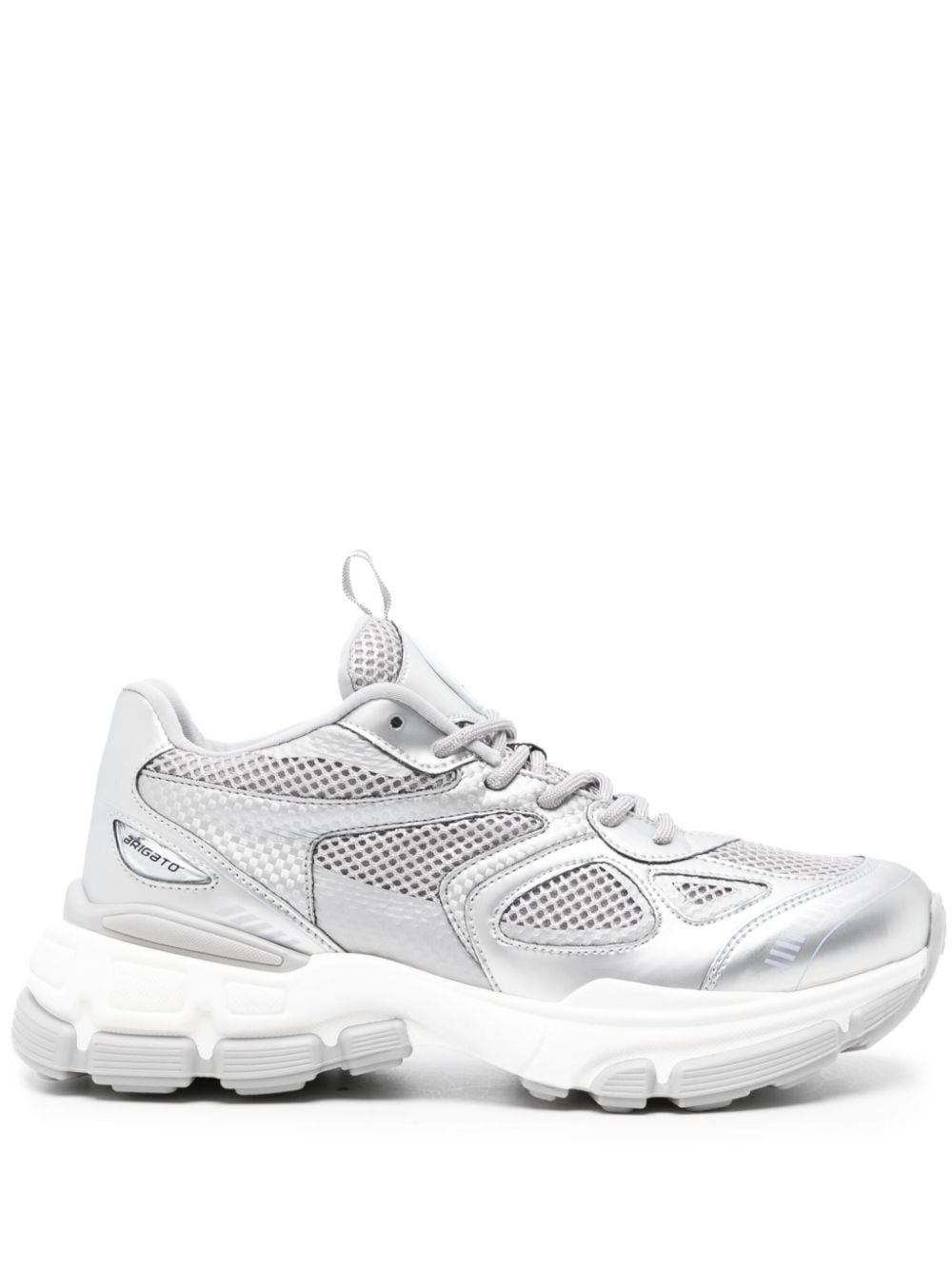 Marathon Neo panelled sneakers Nodding to nineties athletic shoes, Axel Arigato's Marathon Runner sneakers are defined by their mixed material upper and exaggerated soles. They're handcrafted in Portugal with a panelled leather and mesh upper and are set atop custom-made rubber soles for optimal traction and stability. Highlights - Grey/silver-tone - Faux leather/mesh panelling - Panelled design - Tonal stitching - Logo print to the side - Round toe - Front lace-up fastening - Logo patch at the tongue - Ridged rubber sole - Logo at the sole Imported Composition Other fibres 100% SIZE & FIT Measurement HEEL 1.57 in(4 cm) Sole height 0.98 in(2.5 cm)