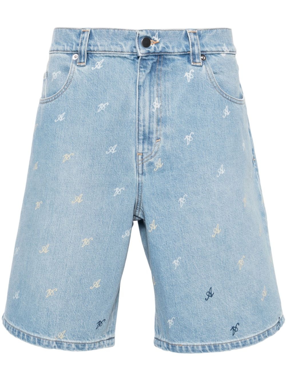 Miles mid-rise denim shorts Highlights - Light blue - Cotton - Denim - All-over logo print - Logo patch to the rear - Mid-rise - Belt loops - Concealed fly and button fastening - Classic five pockets - Straight hem - Knee-high Made in Italy Composition Cotton 100% SIZE & FIT Model measurements Height 6 ft 2 in(1.87 m) Bust/Chest 37.79 in(96 cm) Hips 37.79 in(96 cm) Waist 30.31 in(77 cm) FittingInformation Designed with a wide leg, offering a loose and roomy fit Sturdy and hard-wearing, this denim piece offers no stretch This piece fits true to size – take your usual size