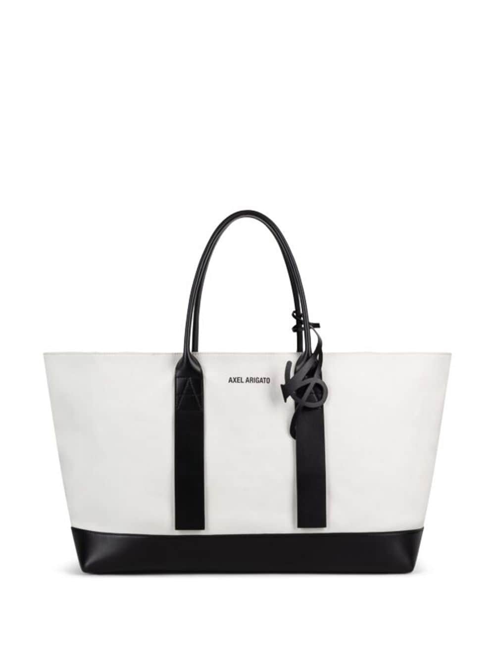 Note tote bag Highlights - White/black - Cotton blend - Canvas - Magnetic fastening - Two rolled top handles - Faux-leather trim - Logo charm - Main compartment - Full lining - Removable pouch Imported Composition Outer: Cotton 70%, Polyurethane 30%