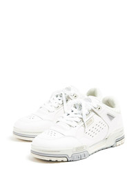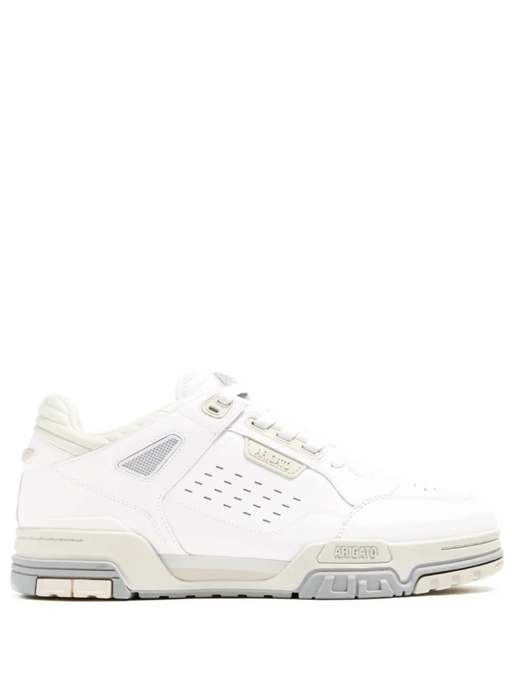 panelled low-top sneakers Inspired by vintage basketball styles, these panelled sneakers by Axel Arigato feature a discreet logo on the sides. Crafted from white leather, they have a minimal and durable design. Highlights - White - Leather - Applique logo - Perforated detailing - Round toe - Front lace-up fastening - Logo patch at the tongue - Branded insole - Rubber sole Imported Composition Sole: Rubber 100% Lining: Fabric 100% Outer: Leather 100%