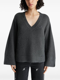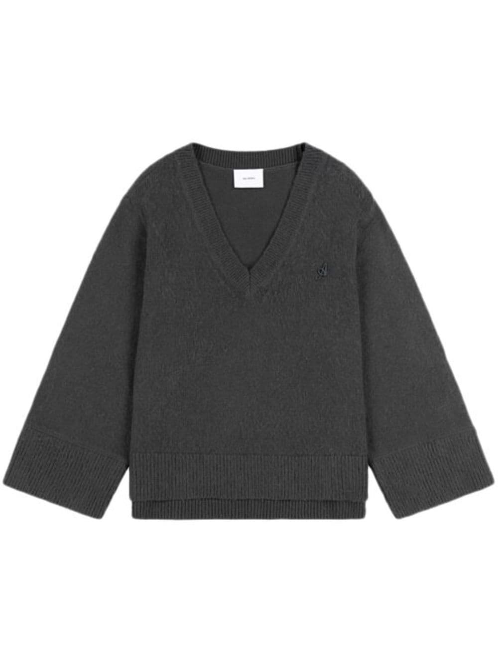 Rain V-neck jumper Highlights - Anthracite grey - Wool-cashmere blend - Distressed effect - V-neck - Slip-on style - Ribbed trim - Tonal logo plaque - Long wide sleeves Imported Composition Wool 90%, Cashmere 10%
