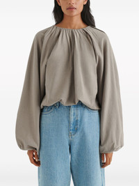 Sade gathered cotton top Highlights - Medium grey - Organic cotton - Gathered detailing - Crew neck - Long puff sleeves - Puffball hem Imported Composition Organic Cotton 100%