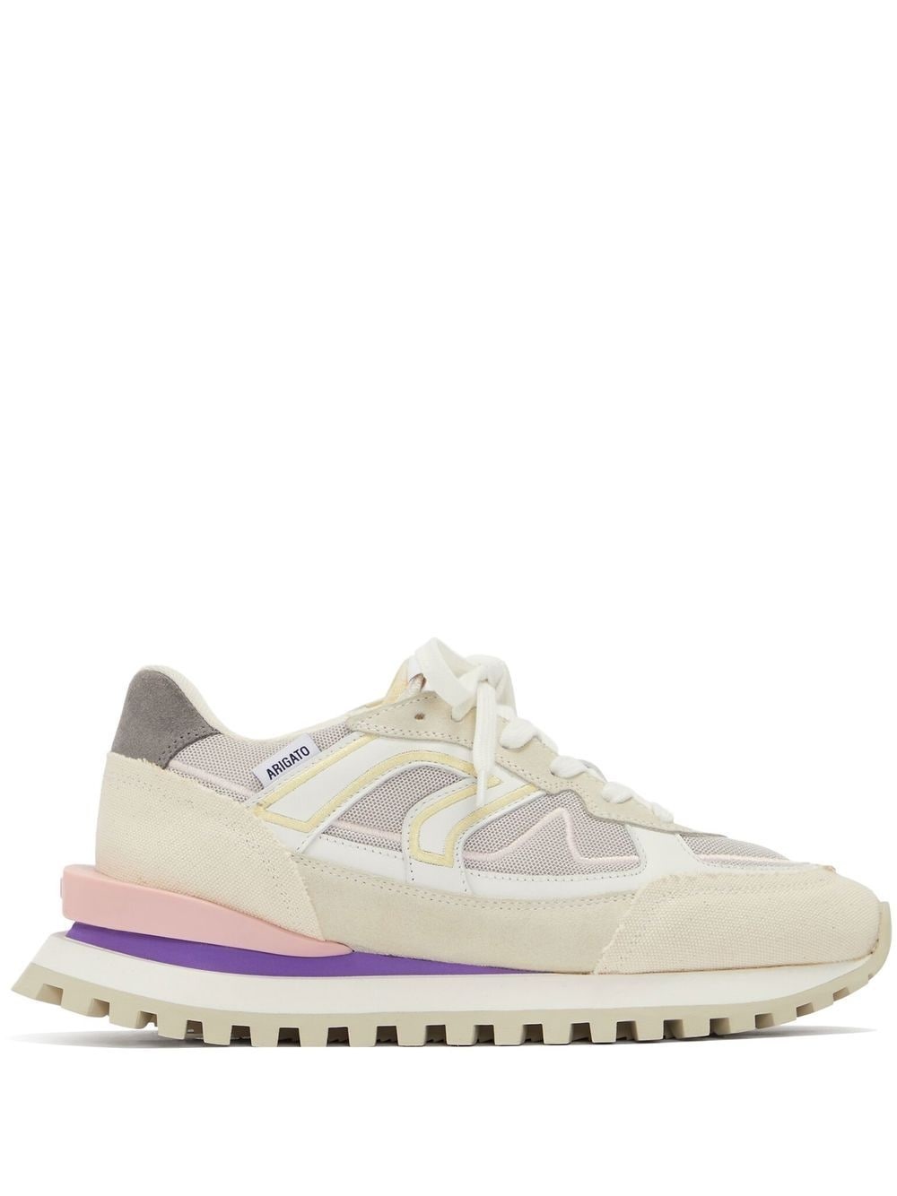 Sonar panelled sneakers Handcrafted in Portugal, these Axel Arigato sneakers are inspired by '70s running shoes. A panelled upper emphasises the retro mood, while a chunky layered sole is elevated by a contrasting spoiler. Highlights - Cream white - Leather/suede/canvas - Panelled design - Layered design - Embossed logo to the rear - Logo tab at the side - Round toe - Front lace-up fastening - Branded footbed - Chunky rubber sole Imported Composition Suede 100%