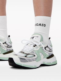 Sphere Trip Runner sneakers Axel Arigato's Sphere Trip Runner sneakers combine design elements of ‘90s athletic shoes with an exaggerated sole. Presented in a white, grey and light green colourway, this interaction has an eye-catching look with removable cushioned footbeds for personalised comfort. Highlights - White/grey/light green - Recycled polyester/faux leather - Contrasting panel detail - Round toe - Front lace-up fastening - Pull-tab at the heel - Branded insole - Rubber sole Imported Composition Leather 100%