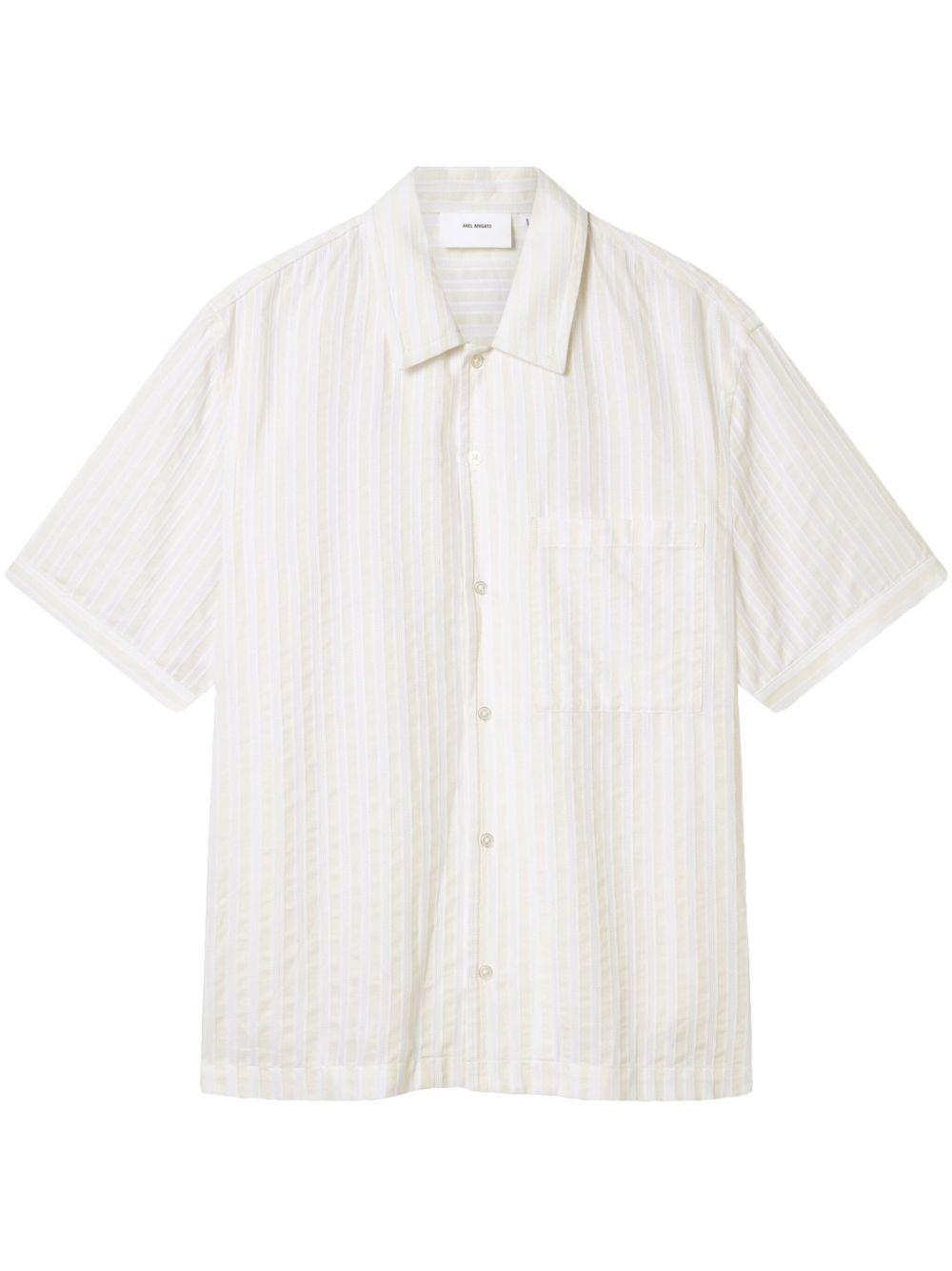 Striped shirt Highlights - Beige - Front button fastening - Chest patch pocket - Camp collar - Short sleeves Imported Composition Cotton 100%