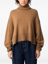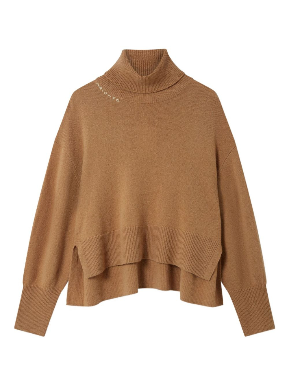turtleneck split-hem sweater Highlights - Camel - Turtleneck neckline - Embroidered detail - Split hem Imported Composition Wool 50%, Polyamide 50% Washing instructions Read Manufacturer Guidelines