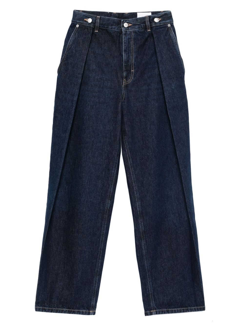 wide-leg jeans Highlights - Navy blue - Concealed fly and button fastening - Belt loops - Two side slash pockets - Two rear patch pockets Made in Italy Composition Cotton 100% SIZE & FIT Model measurements Height 5 ft 9 in(1.75 m) Bust/Chest 32.67 in(83 cm) Hips 36.22 in(92 cm) Waist 24.8 in(63 cm) FittingInformation Designed for a tapered fit, these jeans allow a close fit at the waist and a loose unrestricted fit over the leg with a closer fit towards the ankle Sturdy and hard-wearing, this denim piece offers no stretch