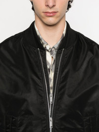zip-front bomber jacket Highlights - Black - Ribbed cuffs - Zip fastening - Side pockets - Baseball collar Imported Composition Outer: Polyamide 100% Lining: Polyester 56%, Viscose 44% SIZE & FIT Model measurements Height 6 ft 2 in(1.88 m) Bust/Chest 37.4 in(95 cm) Hips 38.58 in(98 cm) Waist 31.1 in(79 cm) Washing instructions Dry Clean Only