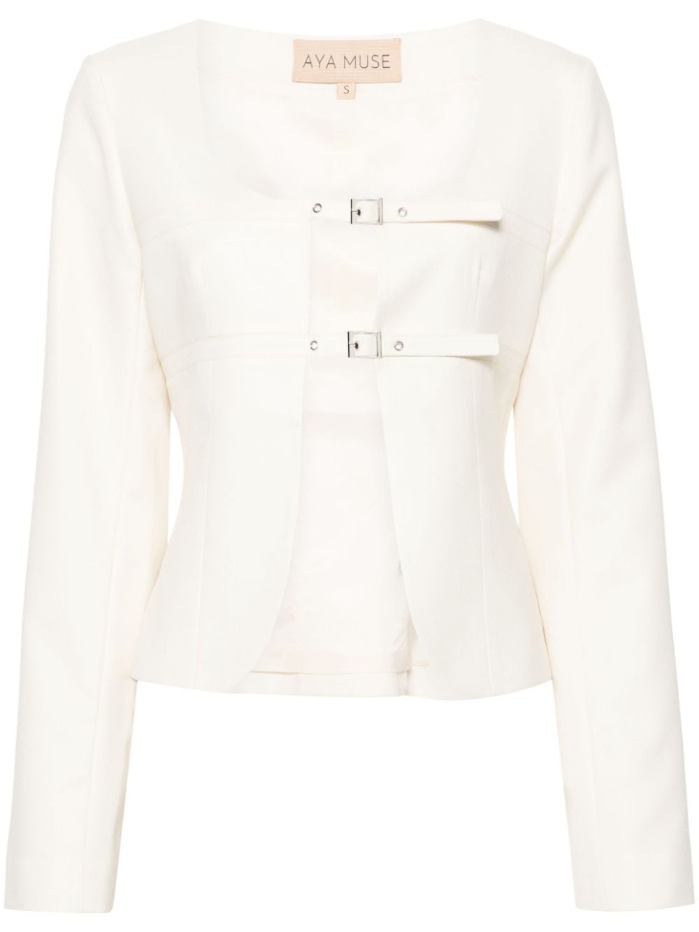 Apure buckle-fastening jacket Highlights - Ivory white - Wool blend - Gabardine weave - Seam detailing - Scoop neck - Front buckle fastening - Long sleeves - Straight hem - Satin lining Imported Composition Outer: Polyester 50%, Wool 50% Lining: Polyester 100% SIZE & FIT Model measurements Height 5 ft 10 in(1.78 m) Bust/Chest 33.07 in(84 cm) Hips 36.61 in(93 cm) Waist 24.8 in(63 cm) FittingInformation Designed for a slim fit that sits just away from the body offering a close yet comfortable fit The belt offers adjustability for fitted preferences Made from a midweight non-stretch fabric This piece fits true to size – take your usual size Washing instructions Dry Clean Only
